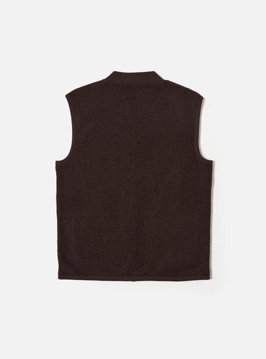 Universal Works Wool Fleece Zip Waistcoat Brown